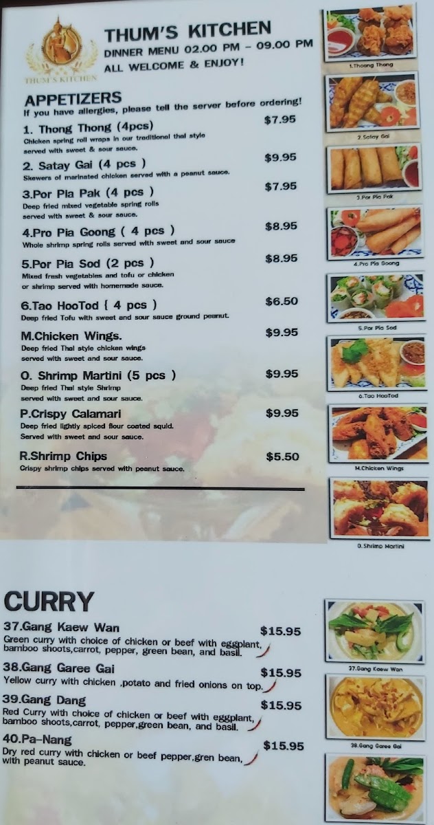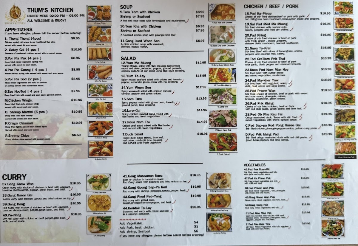 Overall, Thum's Kitchen promises a dining experience that will transport your taste buds to the vibrant streets of Thailand. With their authentic flavors and warm hospitality, this restaurant is a must-visit for any lover of Thai cuisine.